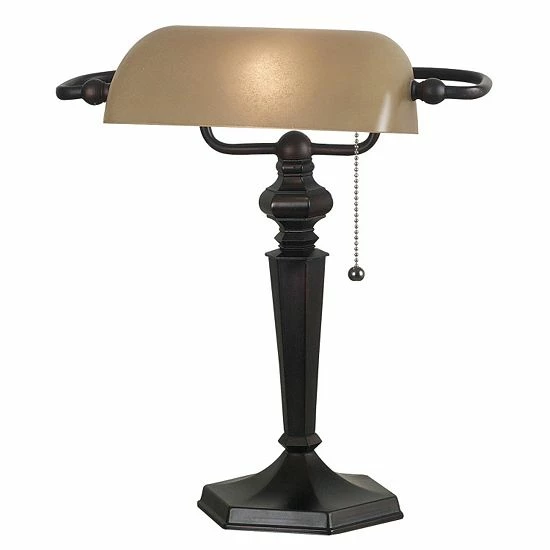 - Classic banker-style lamp adds style to your desktop.